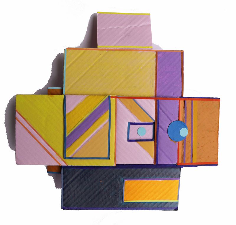Acrylfarbe & Klebeband auf Kartonschachtel